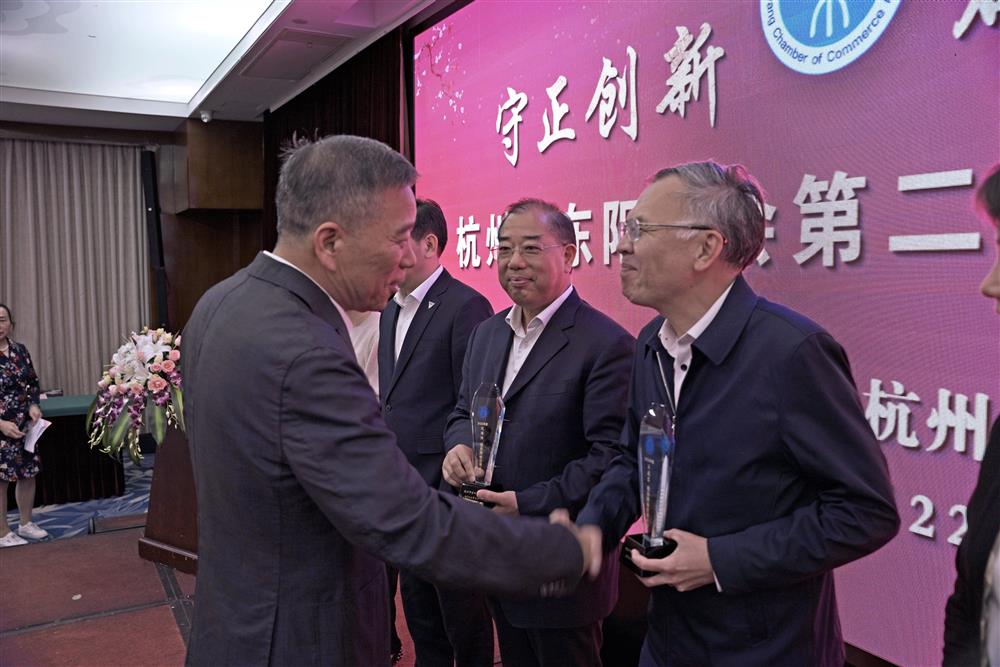 5月22日,常务副会长申屠祖斌对荣获东阳市乡贤联谊总会的2022年度突出贡献先进个人和先进个人颁奖
