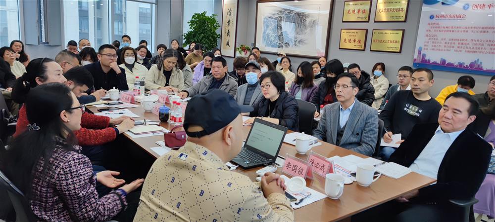 3月14日上午,东阳市乡贤联谊总会王正明主席一行莅临商会指导交流