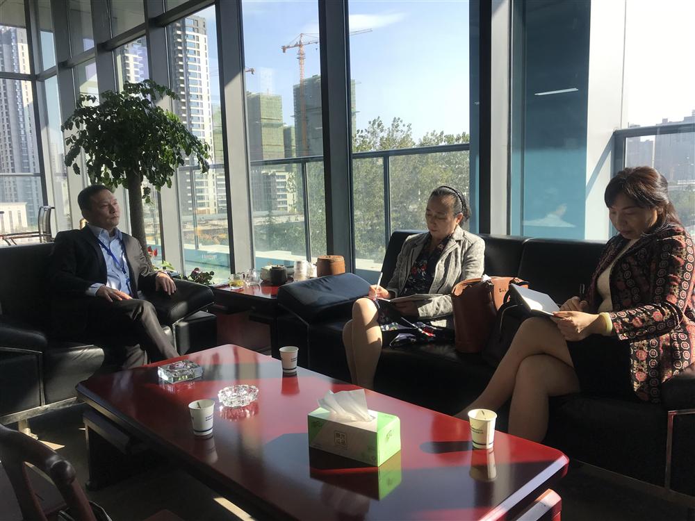 商会秘书长李惠兰等听取康奋威科技董事长任天挺介绍公司经营状况