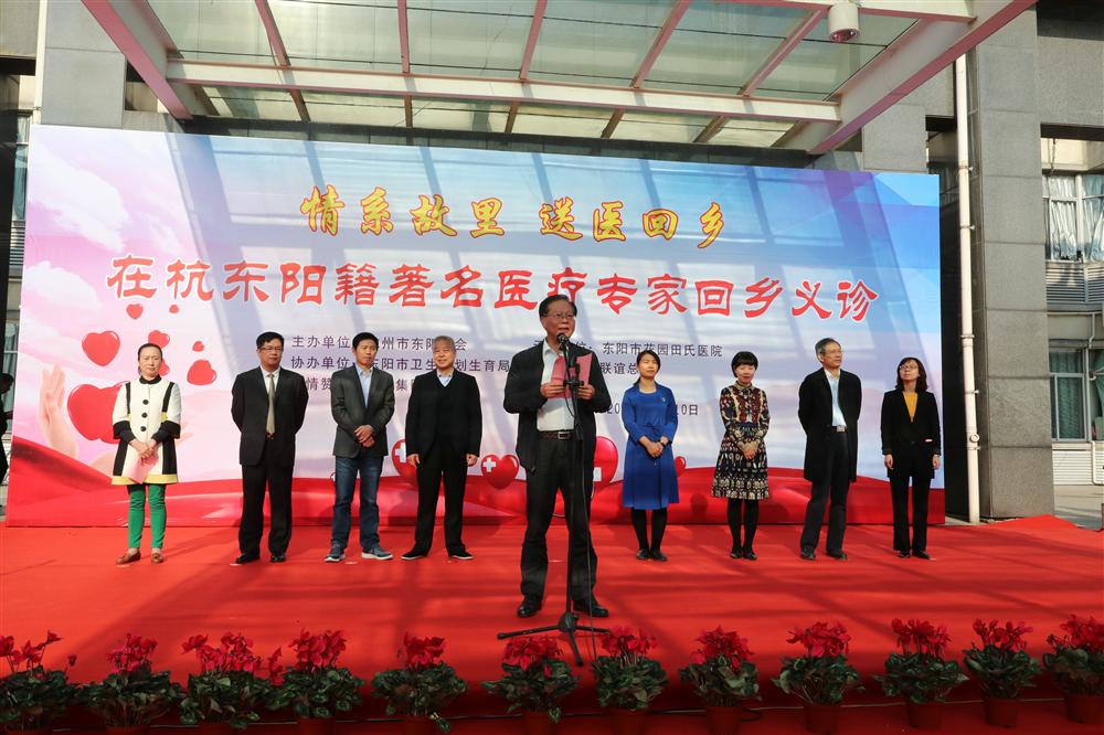 杭州市东阳商会名誉会长、花园集团董事长邵钦祥先生在义诊活动上讲话