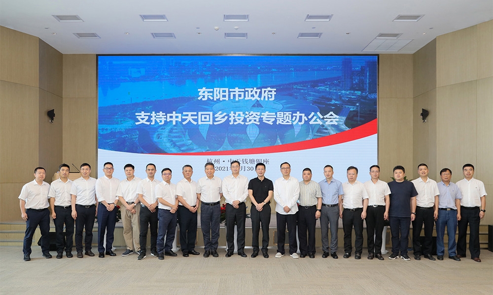 5月30日上午,东阳市政府支持中天回乡投资专题办公会在杭州中天钱塘银座举行。中天控股集团董事长楼永良表示,“十四五”期间中天控股集团将加大回东投资力度,助力家乡高质量发展。市委副书记、市长楼琅坚,副市长吕良勇参加会议。