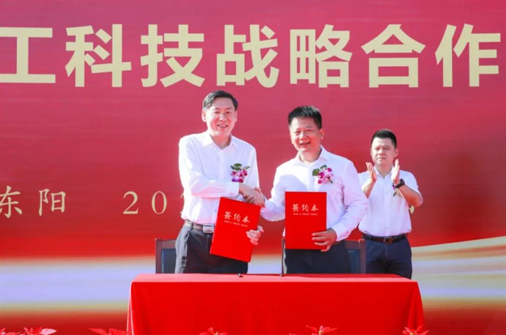 仪式开始,浙江筑工科技有限公司董事长杜德韩与三一集团有限公司副总裁马荣全,在领导、嘉宾和全体公司员工的见证下签订了战略合作协议。三一集团是世界500强企业,中国最大的工程机械制造商,三一筑工专注于PC成套智能装备及建筑结构体系的生产及研发,有着雄厚的技术实力与强大的科研力量。此次两家公司签订战略合作协议,共同研发、推广全装配式建筑技术,对于筑工科技以及东阳市建筑业的发展都具有重要的战略意义。