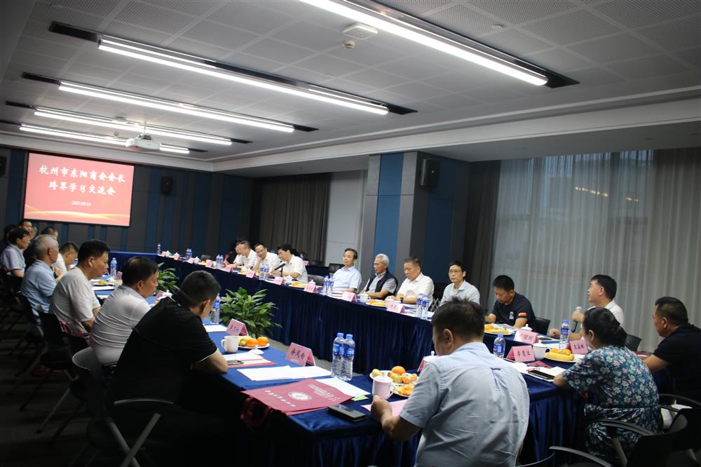 9月15日下午,杭州市东阳商会会长跨界学习交流会在常务副会长单位康恩贝集团会议室举行。会议特别邀请了省人大常委会原副主任厉志海、原省国土资源厅副厅长巡视员潘圣明、中国电信浙江分公司原总经理卢耀辉等领导与会指导,商会名誉会长、康恩贝集团董事长胡季强、商会会长、中天控股集团董事长楼永良等25位会长参加活动。会议由秘书长李惠兰主持。