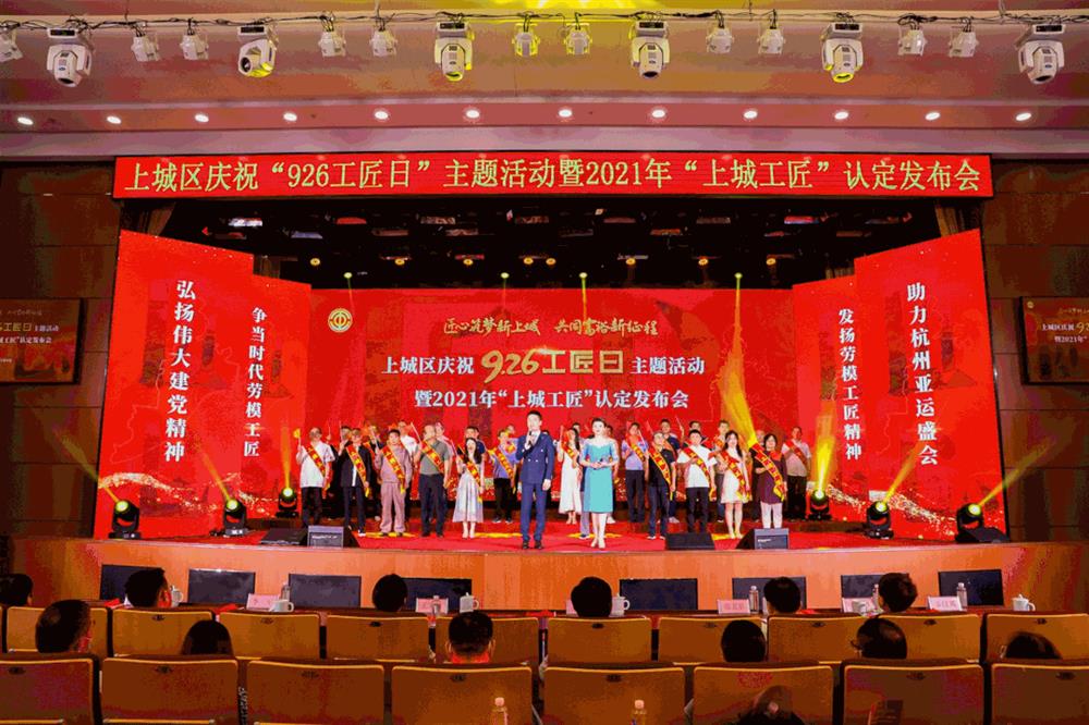 上城区委书记刘颖,区委常委、宣传部部长范卫东,区委常委、组织部部长李军为2021年“上城工匠”颁奖。区委副书记、政法委书记王文硕对弘扬劳模工匠精神提出了三点希望:一要崇尚劳动、礼赞创造,在区域发展中弘扬工匠精神;二要爱岗敬业、争创一流,在服务大局中培育工匠人才;三要发挥优势、凝聚力量,在共同富裕中彰显工匠风采。