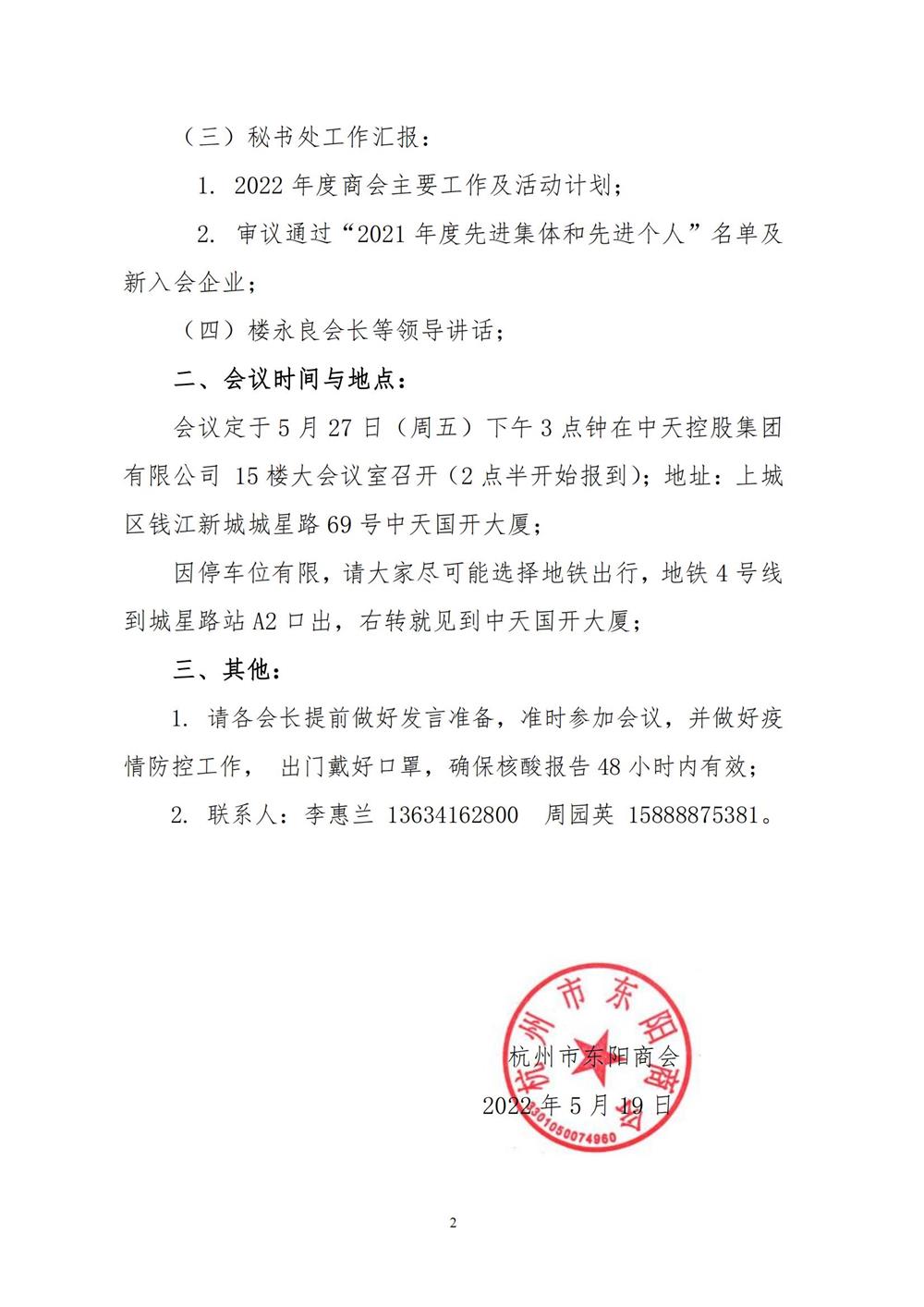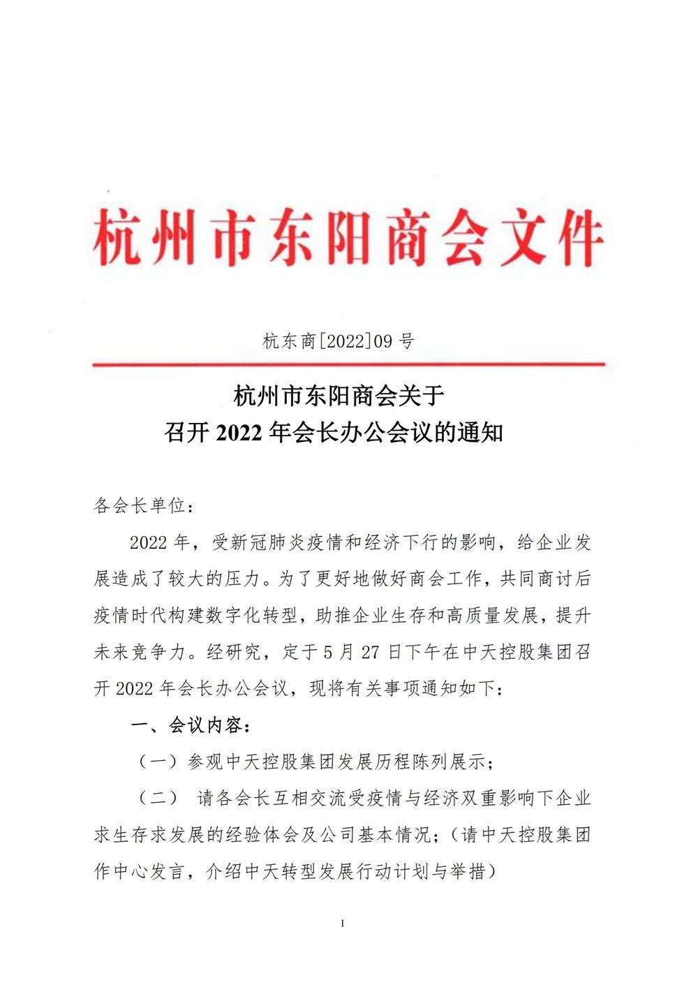 杭州市东阳商会关于召开2022年会长办公会议的通知