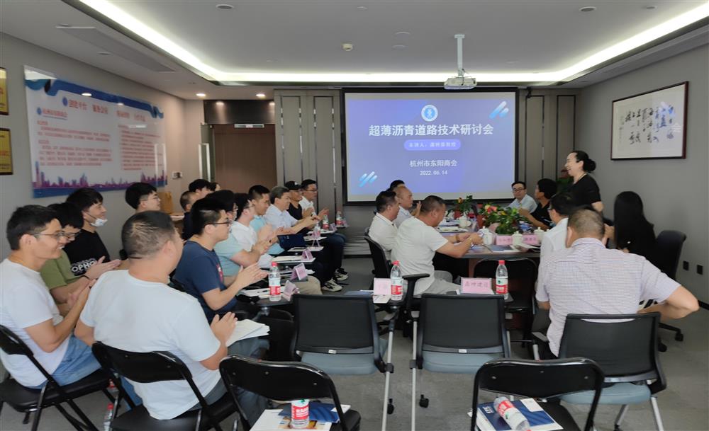 6月14下午,杭州市东阳商会根据国家倡导绿色建筑、科技建筑、数字建筑的要求,针对商会建设工程、房产开发、市政工程、道路绿化等会员企业多,为了进一步提高商会企业施工技术人员对相关专业高科技、新技术领域的认知和了解,加强行业之间的学习交流,举行了“超薄磨耗层的发展方向与若干技术问题思考”专题讲座。参加会议的有中天交通、中天建设、歌山建设、城建建设、城投集团、三方建设、筑工科技、绿驰景观、江天园林、恒和工程、顺捷建设、华运通达、杭坤建设、正量建筑、港盛建设、晟泰建筑等企业主要负责人、质量技术等分管人员30多人参加了专题研讨会。会议由秘书处李惠兰主持。