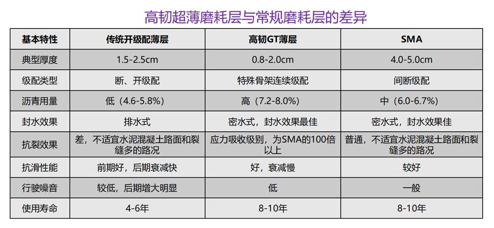 六、高韧超薄磨耗层与其他磨耗层的区别。从经济效益上,省成本,节省约65%人工费,35%机械租赁费;省材料,节省约60%沥青材料,75%石料;长寿命,预期使用寿命8-10年,寿命周期维修费用降低40%以上。环境效益上,低排放、低噪音、视觉质感好。社会效益上,行车安全;改造速度快,交通影响小;对居民干扰小。七、同步摊铺与分步摊铺的区别。高韧薄层罩面实施厚度在1.5cm以下时应采用同步摊铺工艺,粘层油均匀喷洒、摊铺速度快,喷洒摊铺合二为一;还介绍了碾压、温度、养护与开放交通等施工注意事项。八、工程应用、评价与推广。高韧超薄沥青磨耗层已成功在上海延安路、港珠澳大桥人工岛通道、白云国际机场、广澳高速、天河CBD、澳门亚马喇前地等200多个重要路段实施,遍及广东、上海、吉林、澳门等20余个省市和地区,实施面积逾1000万平米。应用案例主要有沥青路(桥)面改造、水泥混凝土路面改造、隧道道面改造等。2019年1月高性能沥青的高韧超薄磨耗层技术体系入选“国家交通运输部重大科技创新成果推广项目”;2020年入选首届“全球技术转移大会”现场展示(广东省科技厅推荐入围两项之一)等等。