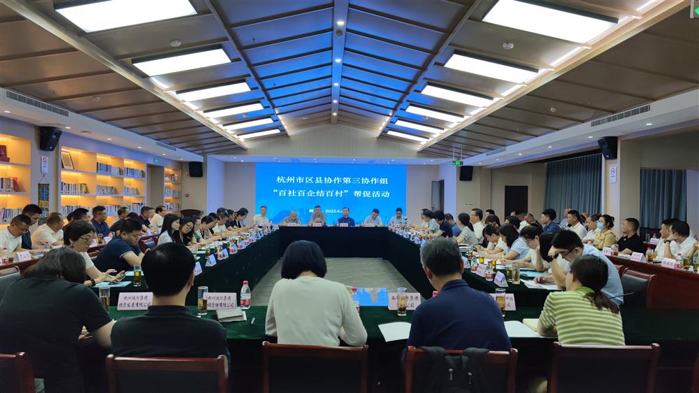 6月29日,杭州市东阳商会秘书处李惠兰、周园英等一行三人赴桐庐参加由杭州市区县(市)协作第三协作组开展的“百社百企结百村”帮促活动。杭州市工商联、桐庐县有关领导,滨江区、拱墅区共11个街道、15个经济合作社及杭州市13家国有企业、9家民营企业和6个商会的负责人及桐庐县5个乡镇、15个村的领导干部100多人参加了“三百”帮促活动。会议由桐庐县农业农村局党委委员、副局长施宇昕主持。
