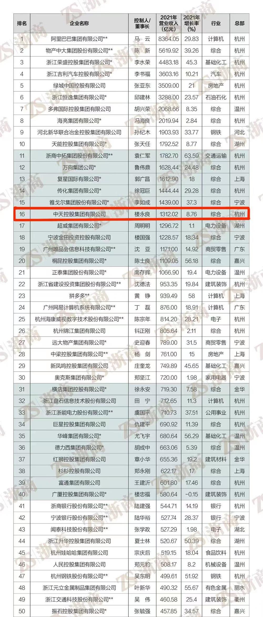 据悉,虽然2021年国内外经济形势严峻,但上榜的500家民营企业仍逆势而上,创造了10.95万亿元的营收,实现了11.7%的增长。其中,阿里巴巴、物产中大、荣盛控股集团位居前三名。自改革开放以来浙江经济的快速发展,充分诠释了民营经济在先富带后富、最终实现共富的独特优势和重要作用。民营经济是浙江经济的“铁柱钢梁”和浙江发展的“制胜法宝”,是浙江经济的最大特色和最大优势,也正成为高质量建设共同富裕示范区的强劲引擎。