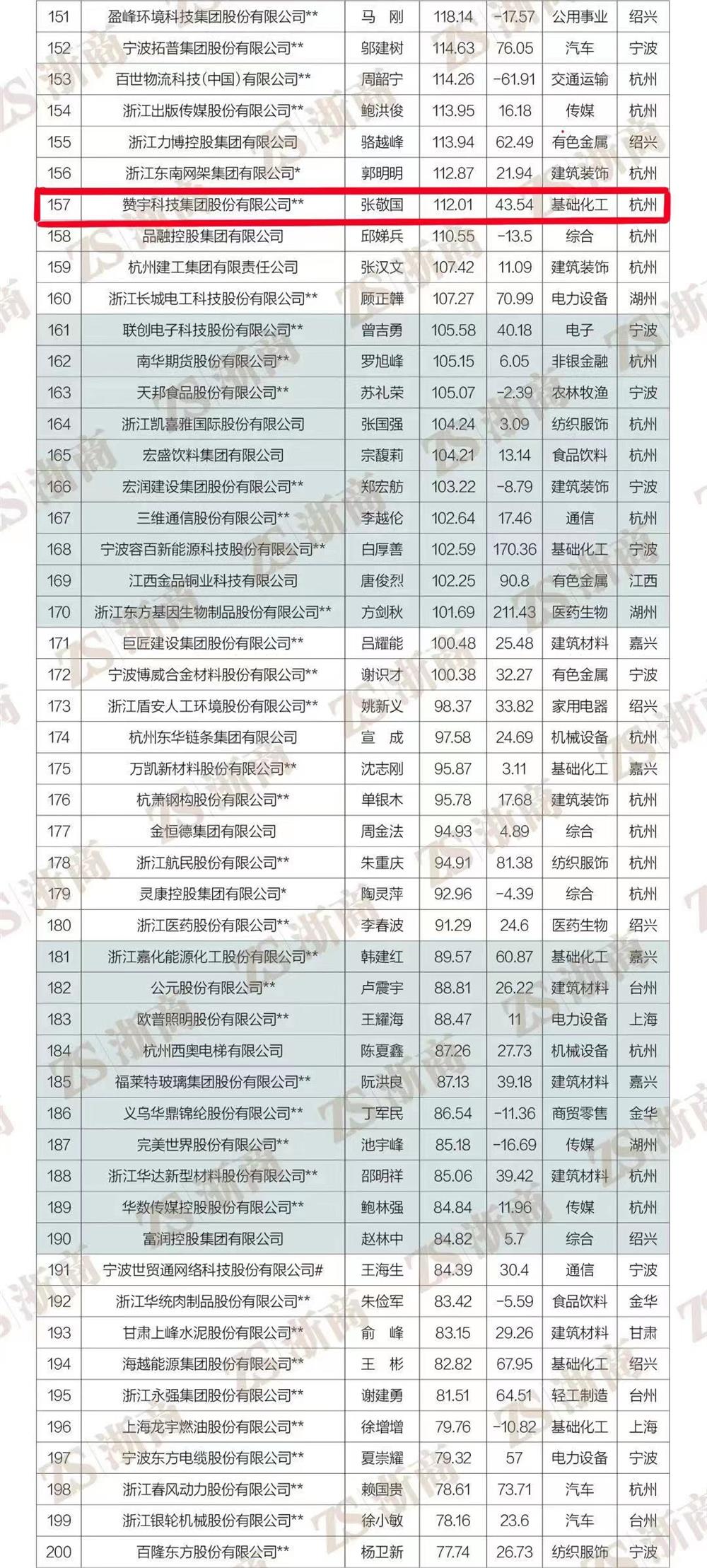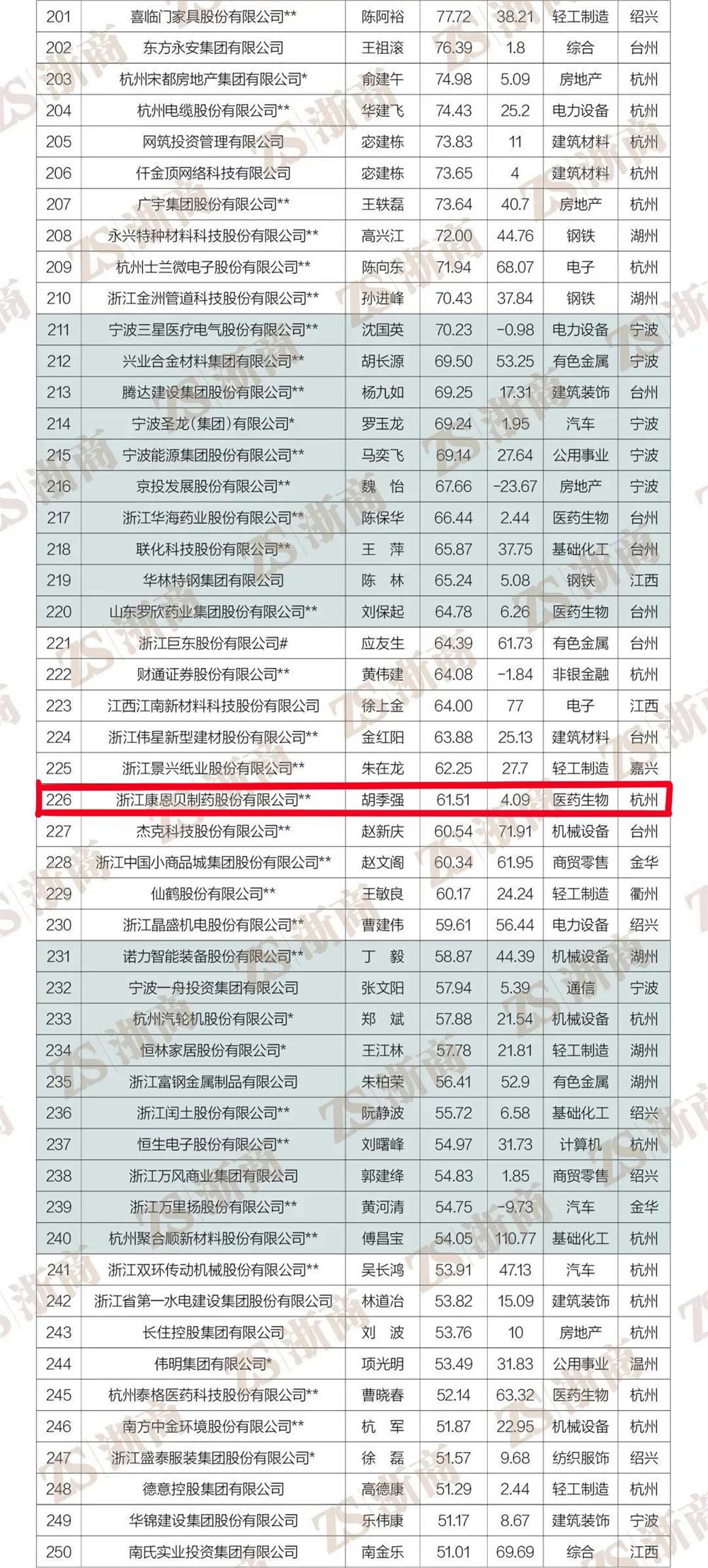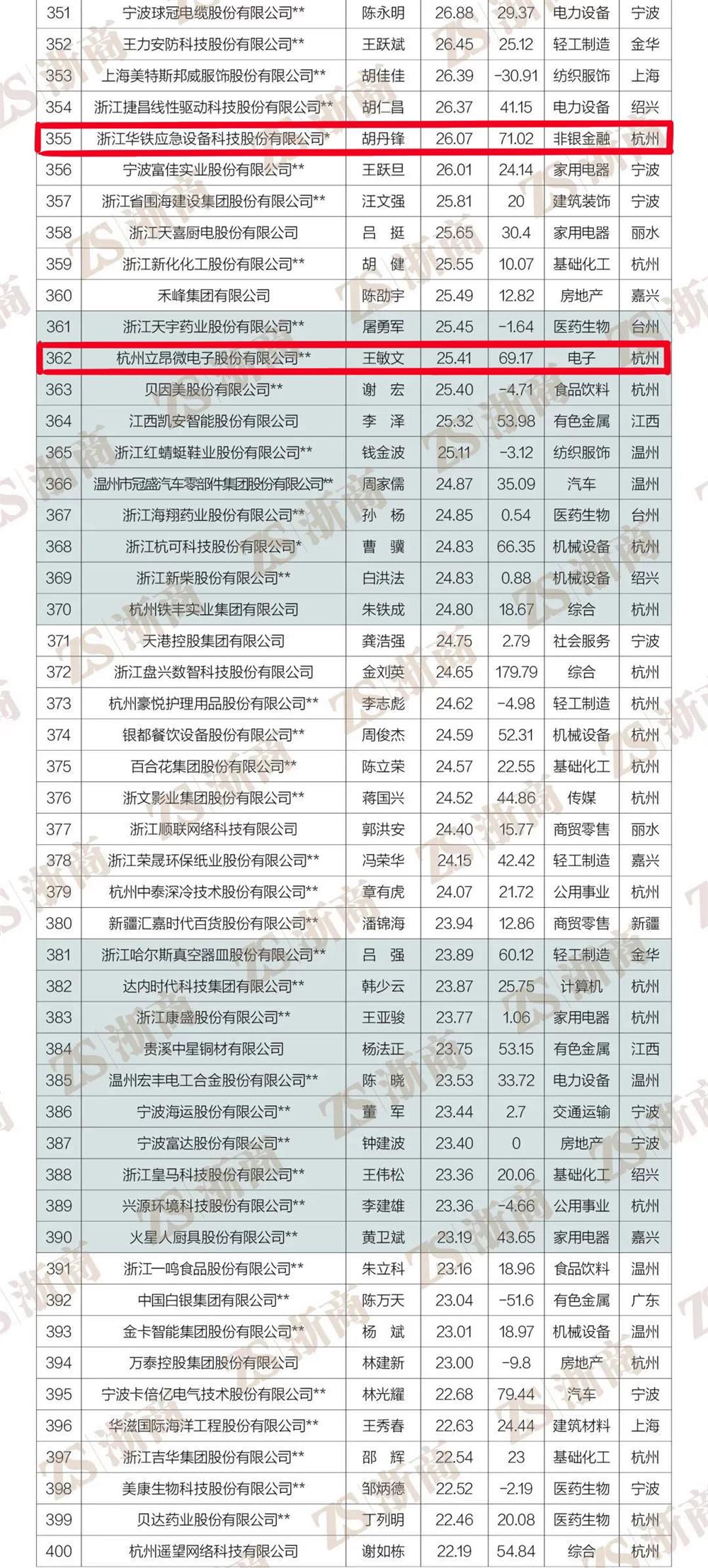 值得欣喜的是杭州市东阳商会有8家优秀企业蝉联榜单。其中中天控股集团有限公司蝉联榜单第16位(较2021年上升1位)、花园集团有限公司蝉联第72位、歌山建设集团有限公司蝉联第128位、赞宇科技集团股份有限公司蝉联第157位(较2021年上升28位)、浙江康恩贝制药股份有限公司蝉联第226位、浙江华铁应急设备科技股份有限公司蝉联第355位(较2021年上升81位)、杭州立昂微电子股份有限公司蝉联第362位(较2021年上升77位)、浙江健盛集团股份有限公司蝉联第417位(较2021年上升13位)。恭喜以上8家企业成为浙商经济发展中的佼佼者,在疫情影响下公司依然蒸蒸日上,业绩卓著,为浙江高质量发展建设共同富裕示范区做出了积极贡献!更为杭州东阳商会和东阳人争光添彩!