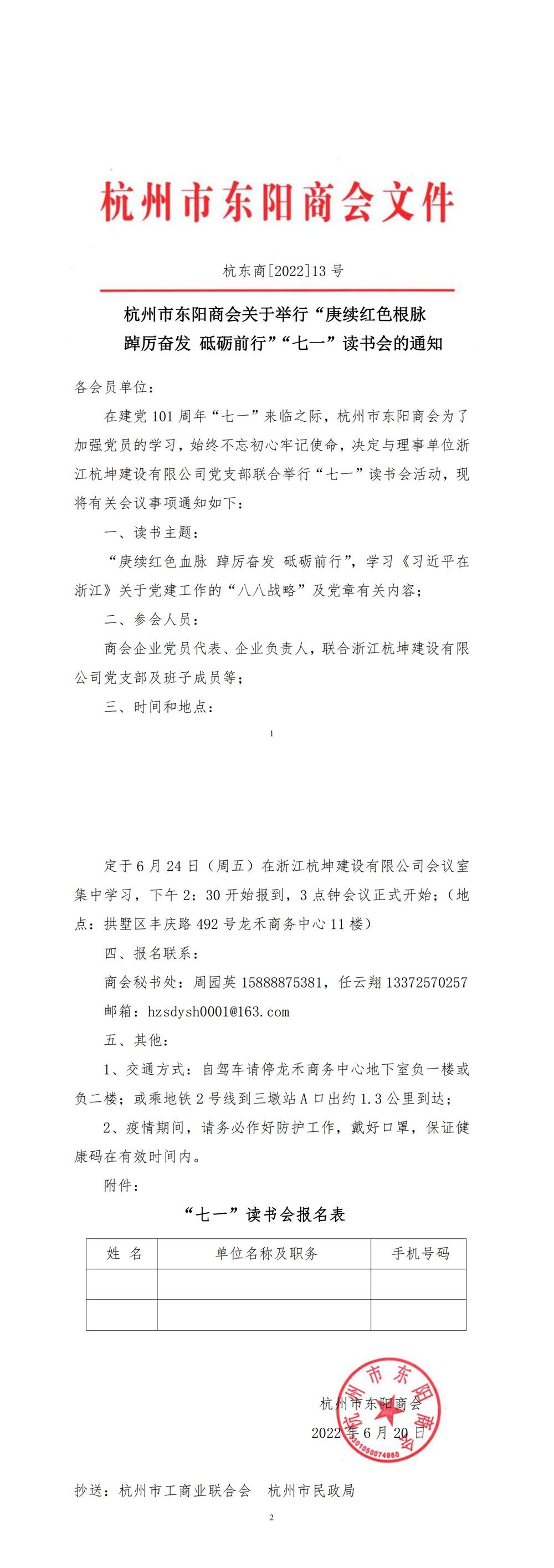 杭州市东阳商会关于举行“庚续红色根脉 踔厉奋发 砥砺前行”“七一”读书会的通知