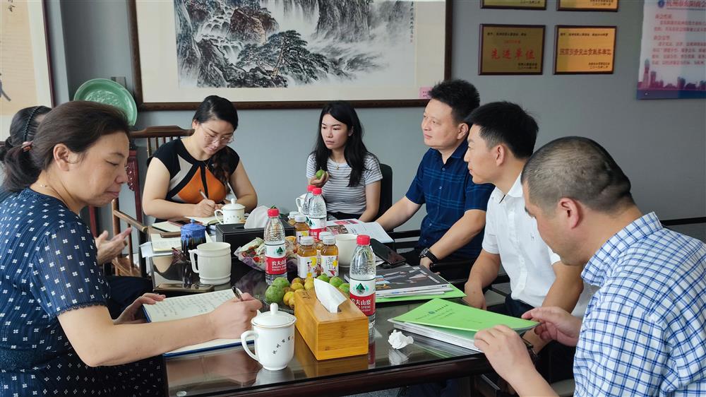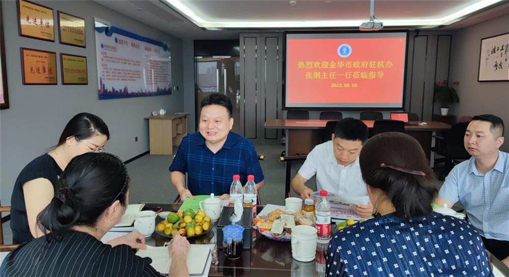 8月10日上午,金华市政府驻杭州办事处主任张纲、副主任、金华市在杭婺商党工委书记罗恒、杭州金华商会谢婷等一行6人莅临我商会进行交流指导,李惠兰等秘书处人员一起参与座谈。
