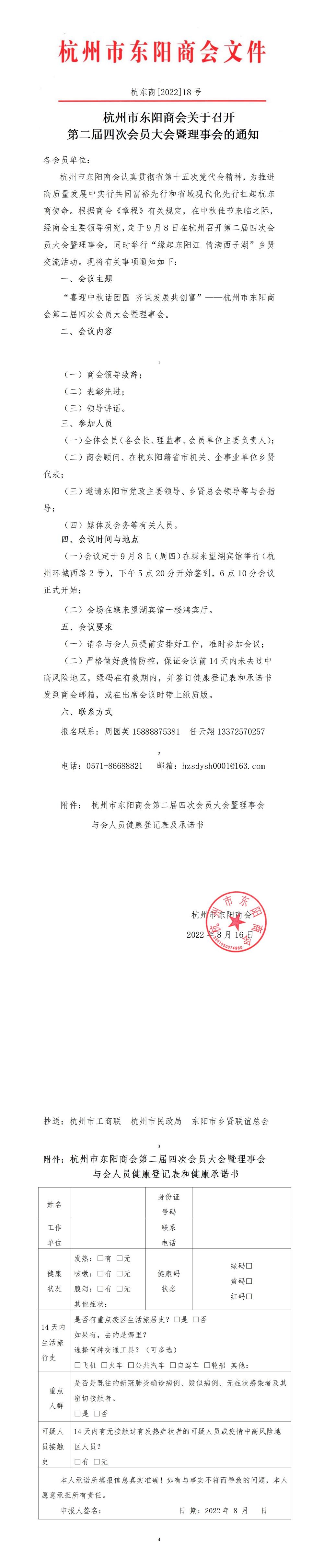 杭州市东阳商会关于召开第二届四次会员大会暨理事会的通知