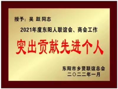 杭州东阳商会自2014年成立以来连年获得“突出贡献先进单位”和“特等奖”,这些荣誉的取得都离不开全体会员的共同努力和乡贤们的关心厚爱,在此深表感谢!希望继续发扬“勤、勇、韧、能、义”的东阳人特质,再接再厉,再创佳绩,争取在“两个先行”示范区建设中进一步发挥杭东商作用,为加快打造东阳新时代强市名城、建设共同富裕先行市贡献力量,以优异的成绩迎接党的二十大胜利召开。
