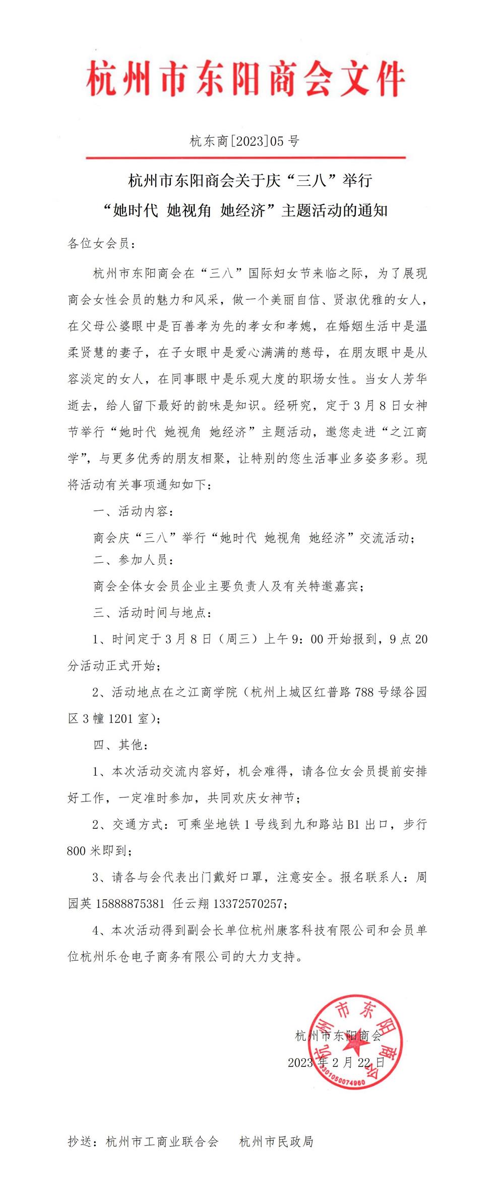 杭州市东阳商会关于庆“三八”举行“她时代 她视角 她经济”主题活动的通知