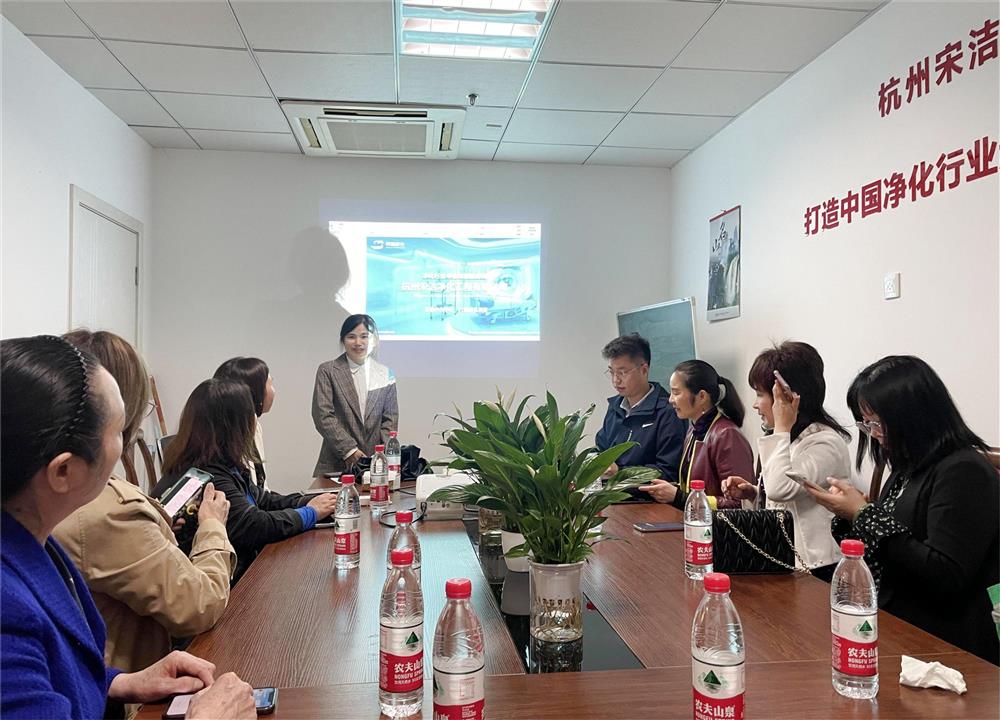 下午,秘书处又与部分女会员到商会理事单位杭州宋洁净化工程有限公司进行走访交流。总经理王晓兰对大家的莅临表示热烈欢迎,并对第一次迎来这么多女同胞感到十分荣幸。大家在会议室听取了公司情况介绍,并参观了办公区域。公司成立于2012年,专门承建各种行业的空调净化系统工程,提供专业的工程设计、制造安装、调试检测、验证等净化系统综合成套服务项目,业务范围涉及医院、药业、生物制品、净化车间、食品饮料、实验室、化学、电子、光电等领域,主要产品有钢板风淋室、不锈钢风淋室、EPS彩钢夹芯板、彩钢手工板、传递窗、净化高效送风口、过滤器、净化灯具等,客户遍及省内外。疫情三年业务稳步发展,2022年产值达到近6000万元,在行业内树立了良好的口碑。王晓兰表示,随着合作客户的不断成长和公司实力的不断壮大,今年业绩有望翻番。