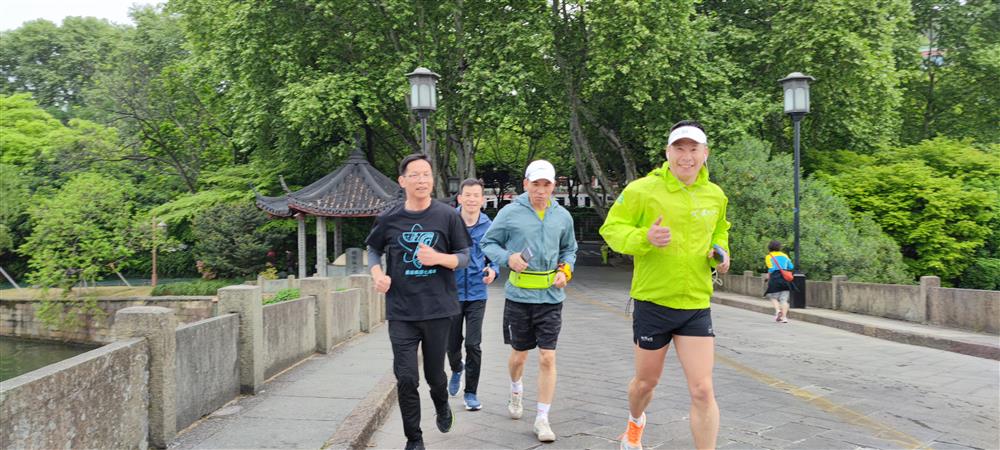 4月22日早上,商会的跑步爱好者们快乐奔跑在风景优美的杨公堤上