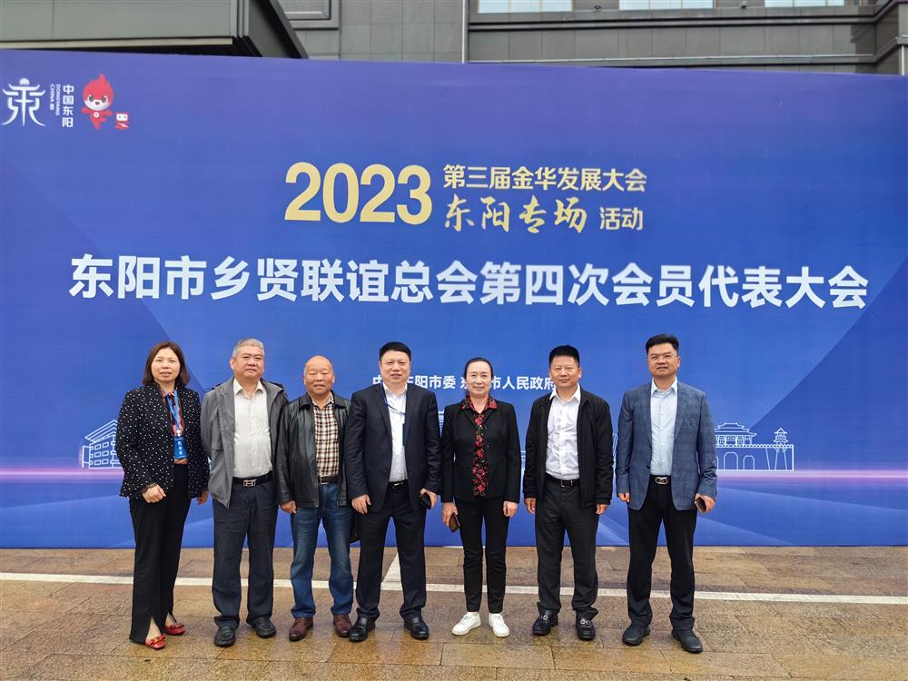 4月29日,东阳市乡贤联谊总会第四次会员代表大会在市行政中心举行,市委书记楼琅坚、市长黄胜可、人大常委会主任朱志杰、政协主席方宪文、市委副书记潘国东、常务副市长郭锦明、统战部长张伟钢等领导出席大会,来自海内外的东阳乡贤汇聚一堂,同叙桑梓情谊,共谋家乡发展。杭州市东阳商会代表浙江筑工科技董事长杜德韩、三方建设董事长吴祖跃、钱江美术馆馆长张向中、杭州晶索建材董事长卜伟荣、浙江太学科技董事长戚甘红及秘书处李惠兰、周园英7人参加。