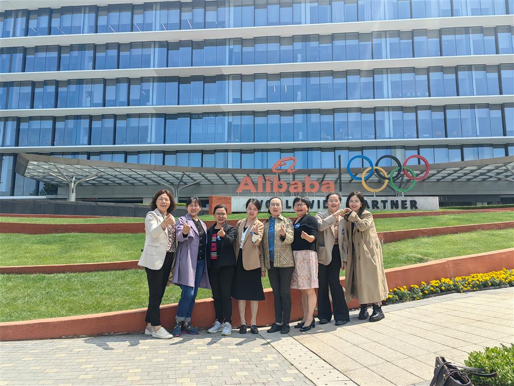 4月27日,杭州市东阳商会副会长、杭州康客科技有限公司总经理朱美芳、杭州永控科技有限公司总经理蔡琳红、浙江挚典科技有限公司副总经理杜妍蝶、杭州弘景贸易有限公司总经理任静蕙、杭州善上水科技有限公司总经理吕婷婷、秘书处李惠兰、周园英等8人走进阿里巴巴公司,参加了由之江商学举办的企业“专精特新”成长战略第五期高成长加速营学习培训。