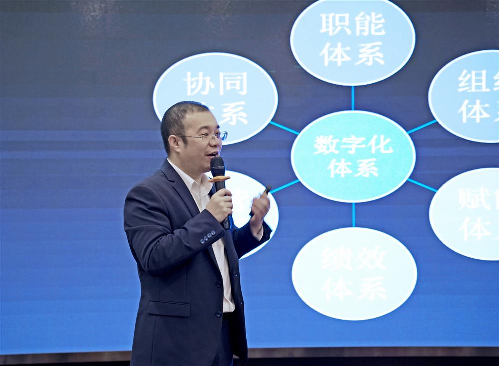 大会还邀请了杭州每刻科技有限公司副总裁、周军赞博士作了“成长型企业的财务数字化转型之路”专题讲座。他主要从成长型企业的增长动因、为什么数字化转型成为企业发展新战略、企业财务数字化蓝图、成长型企业财务数字化转型路径和转型过程中的挑战与应对策略进行了专业分析和案例介绍,特别讲了战略底层逻辑的7种力量,包括规模经济、网络效应、反定位、更换成本、垄断资源、品牌和流程效率。一个多小时讲座,企业家们听得聚精会神,学习了财务数字化管理帮助企业提升战略发展的新思维。