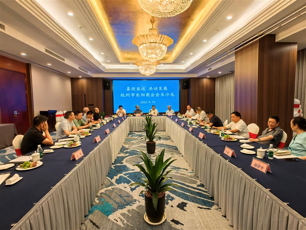 9月12日下午,杭州市东阳商会在杭州第19届亚运会即将隆重召开之际举行了“喜迎亚运 共话发展”会长沙龙,活动在执行会长单位歌山建设集团有限公司品悦大酒店举行。商会会长、中天控股集团董事长楼永良,执行会长、歌山集团董事长何向全,常务副会长、野风集团董事长俞蘠、威星电子系统软件公司董事长傅东风、恒和时代控股董事长李军,监事长、锦怡餐饮董事长施秀伟,副会长、筑工科技董事长杜德韩、三方建设董事长吴祖跃、康诺邦健康产品董事长胡钢亮、鼎坤建设董事长陈再荣、乐活控股董事长葛金伟、欣捷控股副董事长李飞白、华洋缝制董事长徐凤南等近20人参加了沙龙。会议特别邀请了优秀乡贤、浙大金融经济研究院副院长包纯田教授为会长们作当前形势下民营企业经济发展和目标方向的形势分析预判。省国土资源厅原副厅长、副书记潘圣明、建设银行浙江分行副行长兼杭州分行行长叶进出席会议。执行会长何向全主持本次沙龙。
