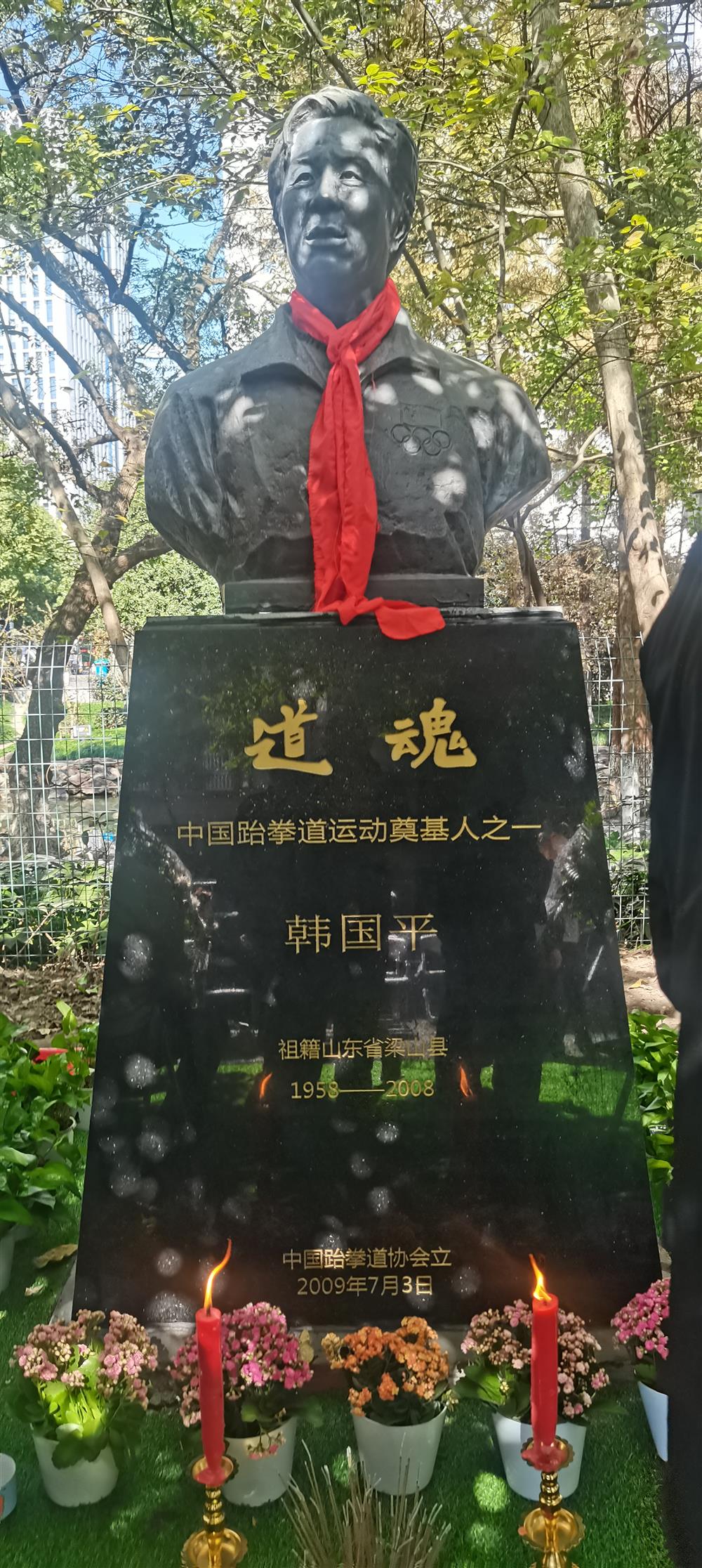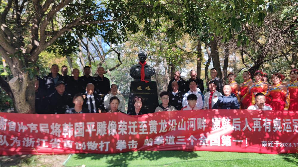 11月21日中午,昔日散打、技击名师厉志伟为高徒韩国平(1958-2008)雕像荣迁举行了简短仪式。雕像现迁至黄龙沿山河畔(韩国平曾经居住过的房子对面)。杭州市东阳商会副秘书长周园英、省跆拳道协会副主席王浩、黄龙体育中心方武康、昔日好拳友徐敬毛、韩国平姐姐韩桂花等代表及嘉宾40多人参加了荣迁仪式。