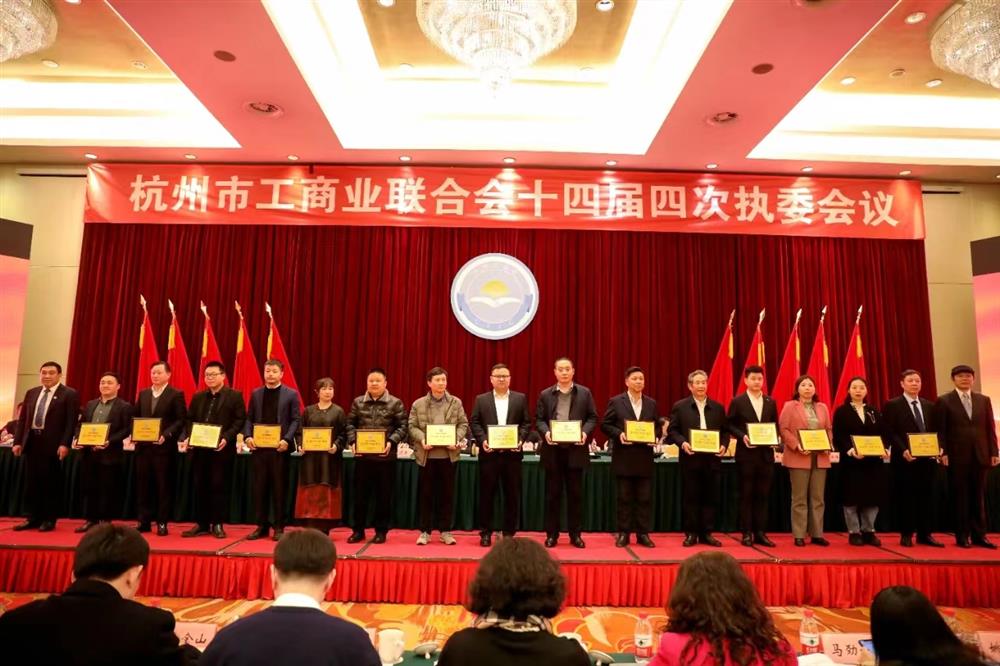 1月19日,杭州市东阳商会获评杭州市“四好”商会,周园英代表商会接受表彰