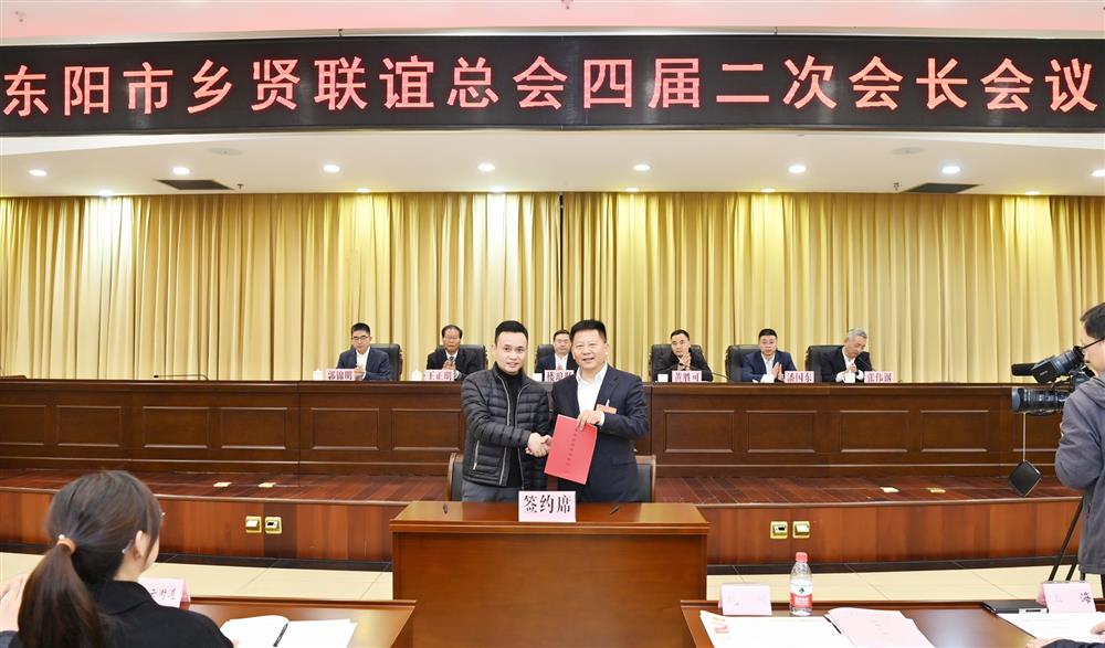 最后,东阳市委书记楼琅坚作了重要讲话,强调要心怀家国、情系桑梓,进一步汇聚合力、助推家乡高质量发展。各地东阳人联谊会(商会)要赋能“乡业”,继续放大第四届世界东阳人发展大会效应,积极引导会员把事业与家乡高质量发展紧密结合,将拳拳赤子之心转化为“项目归乡、智力归乡、人才归乡、资本归乡”的实际行动;要讲好“乡音”,进一步发挥自身影响力和资源优势,一如既往当好东阳的对外“窗口”,在异地他乡讲好东阳故事、传播东阳声音,让更多人了解东阳、向往东阳、走进东阳;要不忘“乡亲”,努力营造起“先富帮后富”“乡贤帮老乡”的浓厚氛围,进一步畅通乡贤回报桑梓、反哺故土的通道,让更多乡贤投身家乡公益事业。