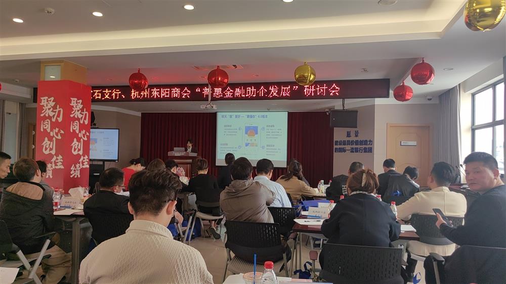 杭州东阳商会为进一步深化银企合作,分享金融普惠政策,提振民营企业发展信心,3月21日特与建设银行杭州宝石支行联合举行“践行普惠金融,助力企业发展”的服务活动。本次活动于建设银行杭州宝石支行会议室举行,参加会议的有杭州鼎磊建筑、浙江普华会计事务所、浙江永控科技、浙江江天建设、杭州海润建设、杭州移领网络等二十五家会员企业。本次活动由商会秘书处李惠兰主持。