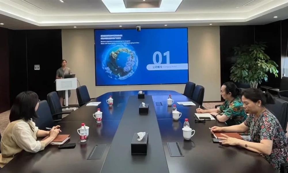 随后,秘书处一行来到了浙江省环境科技有限公司,公司董事长韦彦斐亲自接待。韦董也是东阳人,曾多次提到只要商会有需要,公司可以在环保问题咨询、环境风险排查、数智低碳技术等方面提供支持。座谈交流会上,副总经理徐钰华、发展部朱部长详细介绍了公司的发展历程、机构设置、技术装备、业务范围等。浙江省环境科技有限公司的前身是浙江省环境保护科学设计研究院环评中心,2020年完成混合所有制改革。是一家专业从事生态环境领域技术研发、专业咨询、综合治理及服务集成的节能环保产业平台和国家高新技术企业,现为浙江省国有资本运营有限公司下属一级企业。公司总部现有技术团队超过280人,其中70%以上为研究生及以上学历。这些专业人才覆盖了环境影响评价、环境规划、环境治理、环境应急、排污许可、固废利用处置、污染地块调查评估及修复等多个领域。
