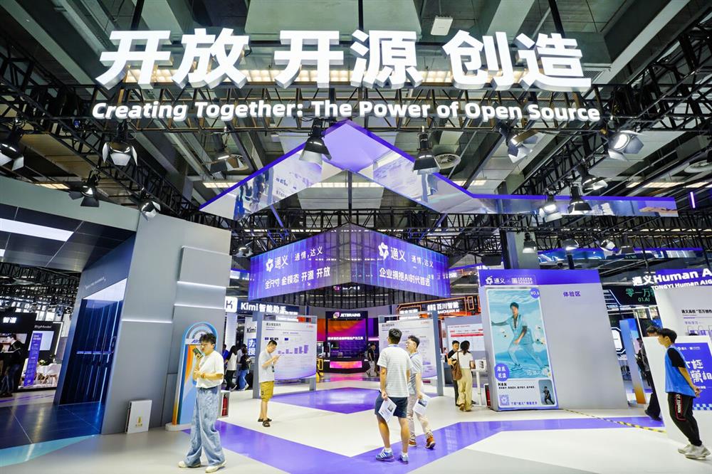 通义展区占据人工智能+馆的C位,展区展示了“千问”“万相”两款基础模型及其对应的应用服务,并结合数字人技术展示了通义“Human AIGC”,呈现多元化产品和技术能力。