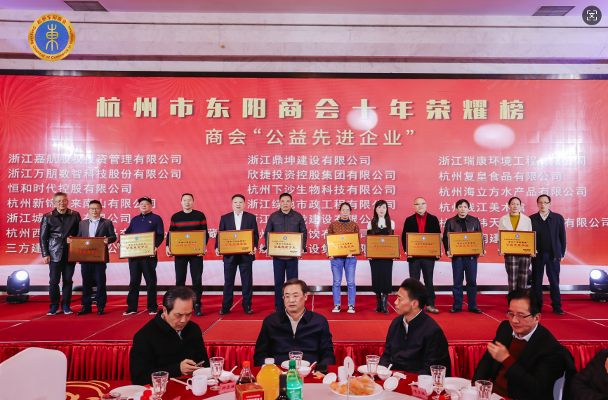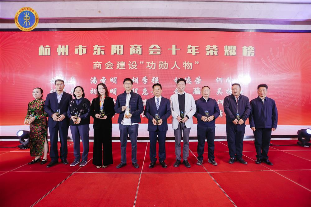 大会现场还对杭州市东阳商会“十年荣耀榜”先进单位和功勋人物进行了表彰。
