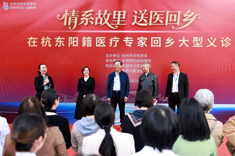 10月25日,杭州市东阳商会"情系故里 送医回乡"2025年义诊活动在东阳市妇幼保健院圆满举行。本次活动汇聚了来自省妇保、儿保、同德、省中、省肿瘤医院等省级和杭州妇保、儿保、市三等市级医疗单位的21名专家,为家乡人民送去了高水平、高质量的医疗服务。东阳市政协原主席、市乡贤联谊总会会长王正明,东阳市卫生健康局党委委员、计生协会专职副会长郭瑜,东阳市妇幼保健院书记陈飞进等院领导出席义诊启动仪式,活动由杭州东阳商会秘书处李惠兰主持。