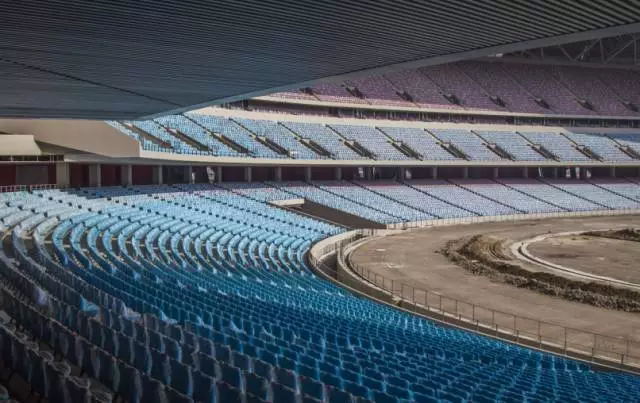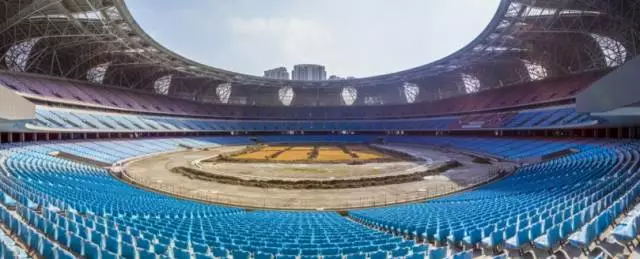 工作人员说,里面有80800个座位,是继国家体育馆鸟巢和广东奥体中心体育场之后,全国第三大体育场馆。