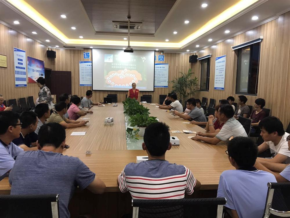 药师志愿者周培强从合理性用药方面向工友进行了分享讲解,他从典型药物日常用药的服用原理和服用方法进行了详细解答。他重点提到抗生素类药品用药期间禁止饮酒,并对饮酒产生的危害进行了详细的阐述。他提醒工友夏季要注意防暑降温,尤其是在室外的工作人员,及时补充水分,同时强调要养成健康良好的生活习惯。
