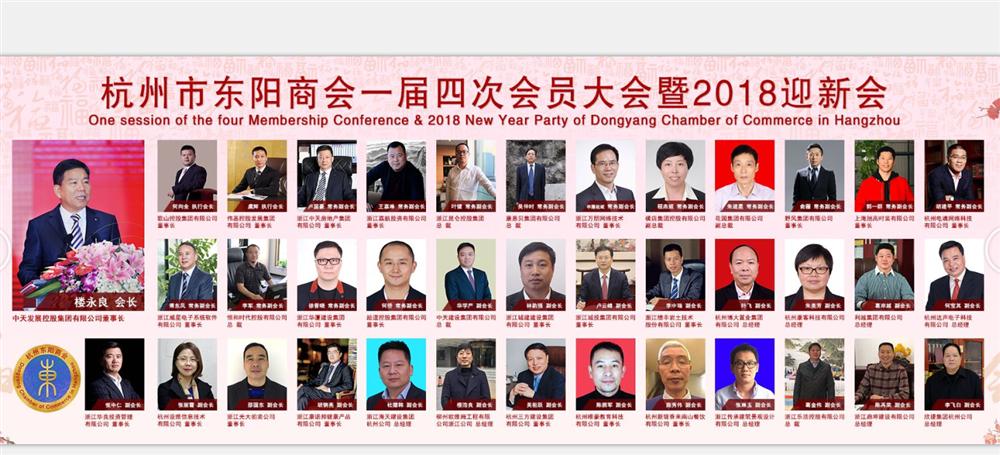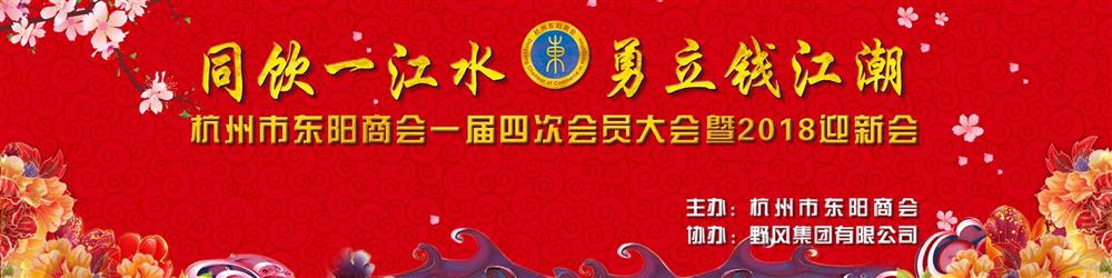2018年1月19日,杭州市东阳商会在美丽的西子湖畔望湖宾馆隆重举行了一届四次会员大会暨2018迎新会。会议以“同饮一江水,勇立钱江潮”为主题,由商会秘书长李惠兰主持,执行会长何向全作商会理事会2017年度工作报告,商会会长楼永良致祝酒辞。杭州市东阳商会全体会员、顾问团成员,在杭东阳籍省市机关部门领导、各界知名人士和热心人士代表,东阳市领导、金华市各兄弟县市在杭商会领导,等出席会议。