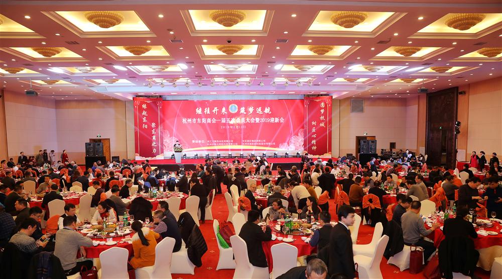 1月12日,杭州市东阳商会一届五次会员大会暨2019迎新会在之江饭店隆重举行。出席本次活动的有在杭东阳籍省、市级领导、曾在东阳任职过的领导、及机关、企事业单位乡贤和热心人士代表,东阳市委副书记、市长姚激扬、市委副书记李宝春、常务副市长王天仁、市政协副主席赵晓珍等领导以及金华市政府驻杭办和各兄弟县市在杭商会秘书长及杭州市东阳商会全体会员,450多名在杭东阳乡贤汇聚一堂叙乡情谋发展、迎新年展未来。东阳市姚激扬市长、杭州市副市长陈卫强分别讲话,执行会长何向全作理事会工作报告,楼永良会长致辞。大会由商会秘书长李惠兰主持。