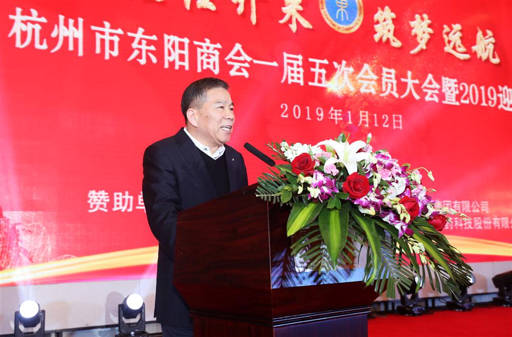 东阳市委副书记、市长姚激扬对杭州市东阳商会2018年取得的成绩表示充分肯定,对在杭乡贤多年来为家乡经济社会发展作出的贡献表示真诚感谢。并希望杭州市东阳商会在新的一年里进一步加强自身建设,强化会员服务,积极发挥在外东阳人的优势,为东阳招商引资、招才引智牵好线搭好桥;希望广大在杭州乡贤不断做大做强自身事业的同时,不忘家乡、心系家乡,保持与家乡的联系,一如既往地支持家乡建设,积极回家乡投资创业,共同推动东阳高质量发展,创造高品质生活,为家乡的经济社会建设添砖加瓦。