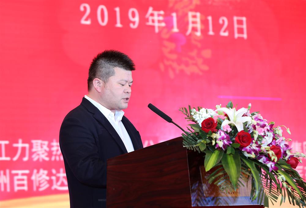 杭州东阳商会会长、中天控股集团有限公司董事长楼永良致辞。首先对关心支持商会工作的各位领导、各界宾朋乡贤、以及全体会员致以诚挚的感谢和美好的祝福!2018年,东阳商会坚持“天下同利,和合共赢”的办会理念,发展会员,凝聚会员,回馈会员,团结奋进,共谋发展。2019年,楼会长引用习近平总书记的话“要以坚如磐石的信心、只争朝夕的劲头、坚韧不拔的毅力,一步一个脚印把前无古人的伟大事业推向前进。”他说在这样的风雷急荡中,让我们继续彰显东阳人的英雄本色,借助商会搭建的良好平台,一起抱团取暖、相互扶持、携手共进,在冬日的阳光下逆风飞扬,共同创造更加美好的未来。