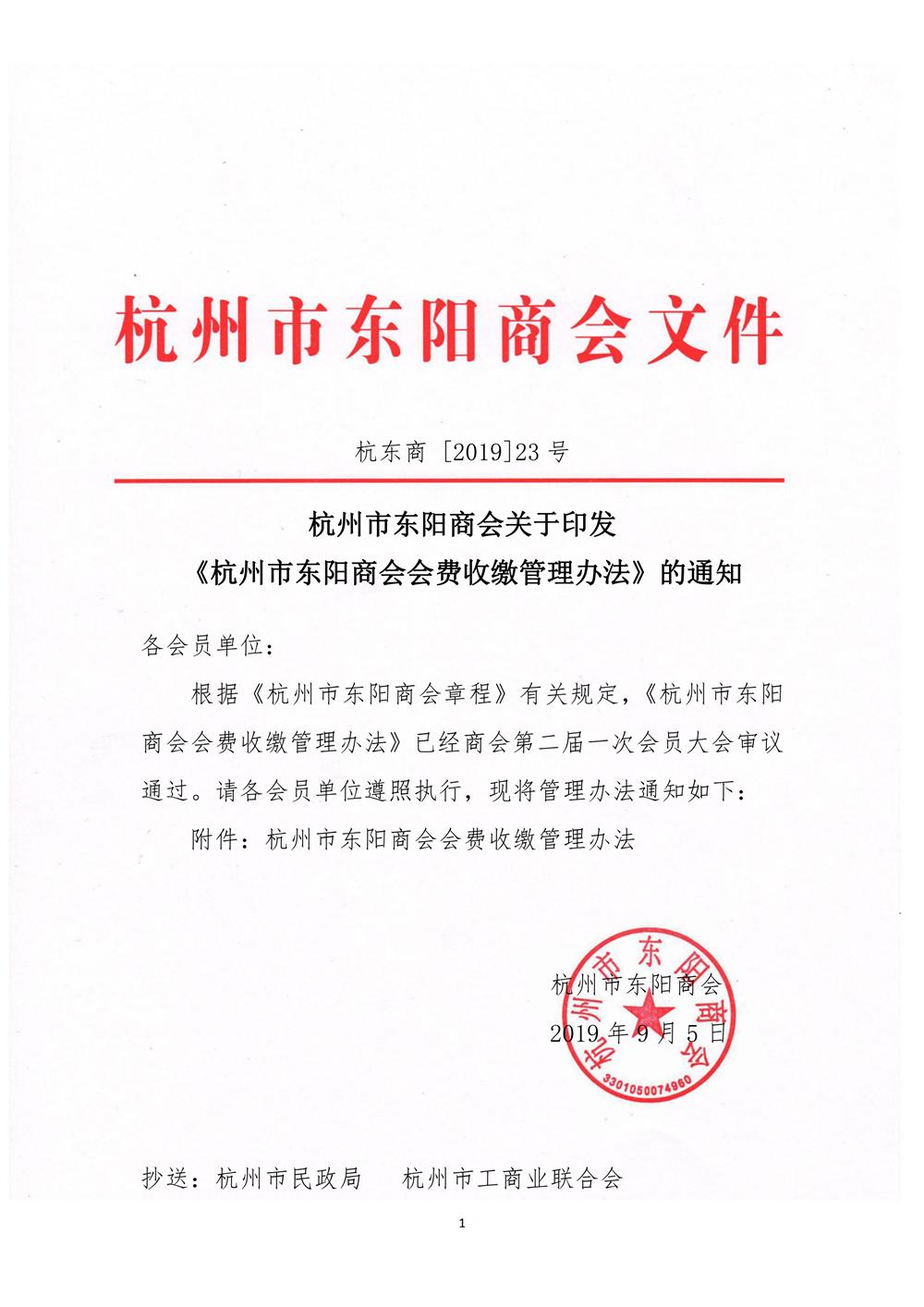 杭州市东阳商会关于印发《杭州市东阳商会会费收缴管理办法》的通知