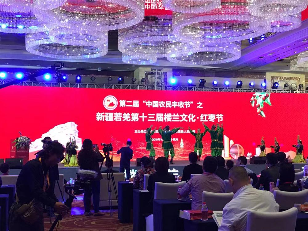 红枣节开场前,一段热情洋溢充满西域风情的新疆舞蹈让大家身临其境。若羌县委副书记、县长艾江山·艾塔洪致欢迎辞,并播放了《寻梦楼兰》宣传片。“昔日古楼兰,今朝新若羌”。若羌县是古楼兰所在地,位于新疆东南部,被誉为新疆矿产资源的“聚宝盆”,红枣、钾盐、黄玉等资源闻名疆内外。人文厚重,素有“历史文化长廊”的美称,是楼兰文化的发祥地,有神秘的罗布泊,原生态的阿尔金山等。此次节会以“丝路楼兰·秘境若羌”为主题,以文化若羌为核心,全方位、多角度展现楼兰文化和民俗文化。在新疆、杭州两地领导致辞后,若羌县第十三届楼兰文化·红枣节正式启动,并对若羌红枣及若羌其他投资项目进行推介。