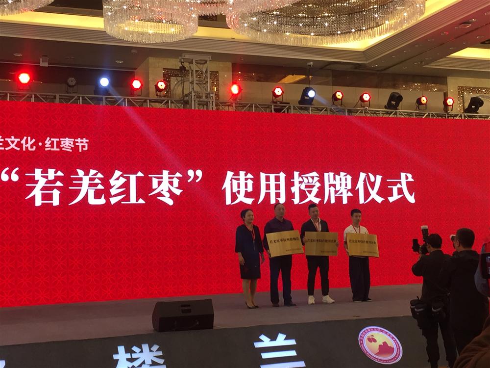 大会还举行了“若羌红枣”品牌使用的授权仪式,杭州市东阳商会会员新疆大疆果业有限公司郑安梁获得“若羌红枣杭州旗舰店”授权。下午3点在江干区银堡街新江花园底层商铺20号举行了“若羌红枣杭州旗舰店”的揭牌仪式。