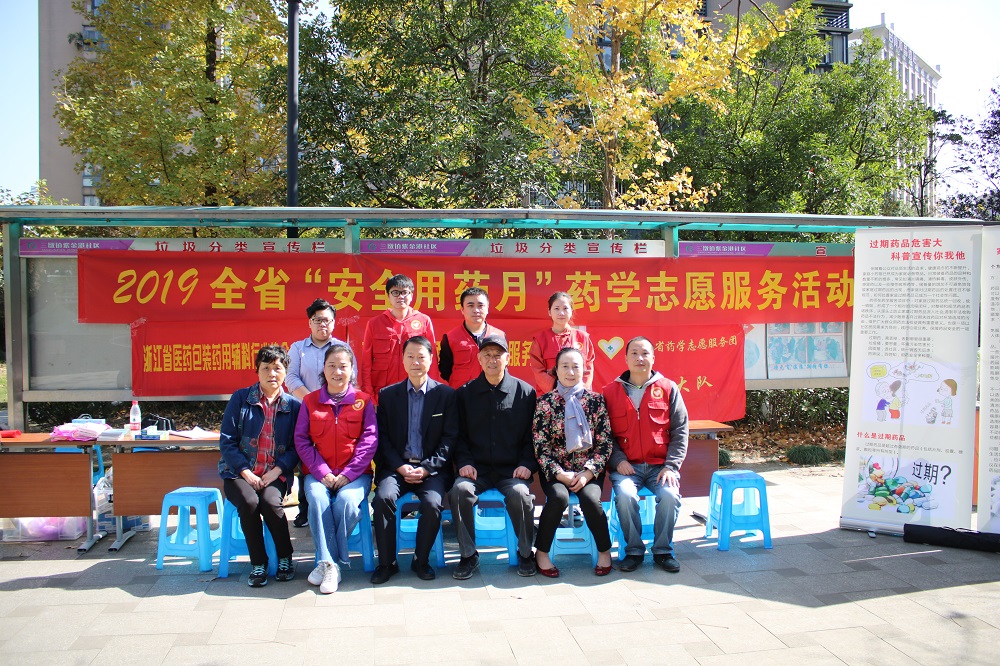 11月14日,杭州市东阳商会联合浙江省医药包装药用辅料行业协会、省执业药师协会等10位志愿者前往西湖区圣苑小区开展2019全省“安全用药月”志愿者服务进社区活动。