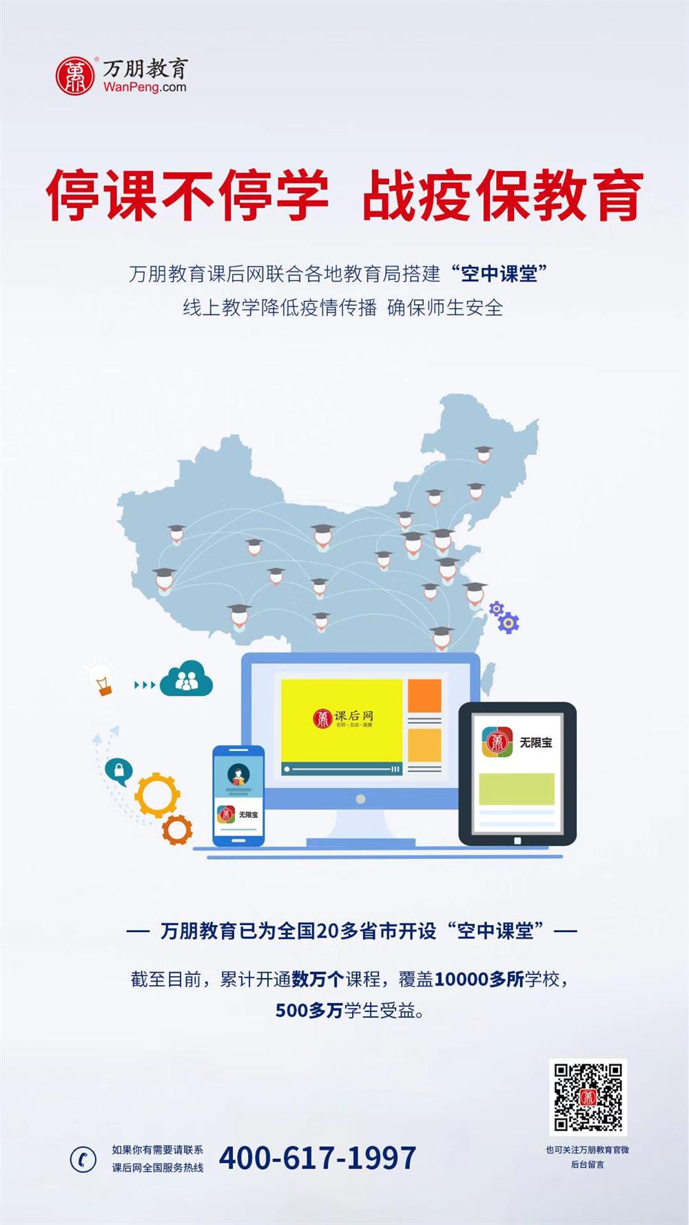 面对疫情,万朋用技术对抗停课,课堂进万家,老师在身边。万朋教育心系湖北,课后网“空中课堂”免费向湖北中小学全面开放!疫情当前,万朋教育全员就位,24小时随时待命,希望在教育界为防疫攻坚战中贡献一份力量!